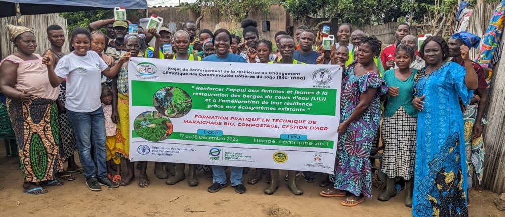 À Lilikopé, l’érosion et la perte de fertilité des sols ne sont plus de simples concepts théoriques, mais une réalité qui touche directement le portefeuille des ménages. Pour inverser cette tendance, le sous-projet « Renforcer l’appui aux femmes et jeunes à la restauration des berges du cours d’eau LILI », financé par R4C-TOGO, a misé sur le renforcement des capacités en techniques agricoles des femmes et jeunes de deux coopératives de la localité.